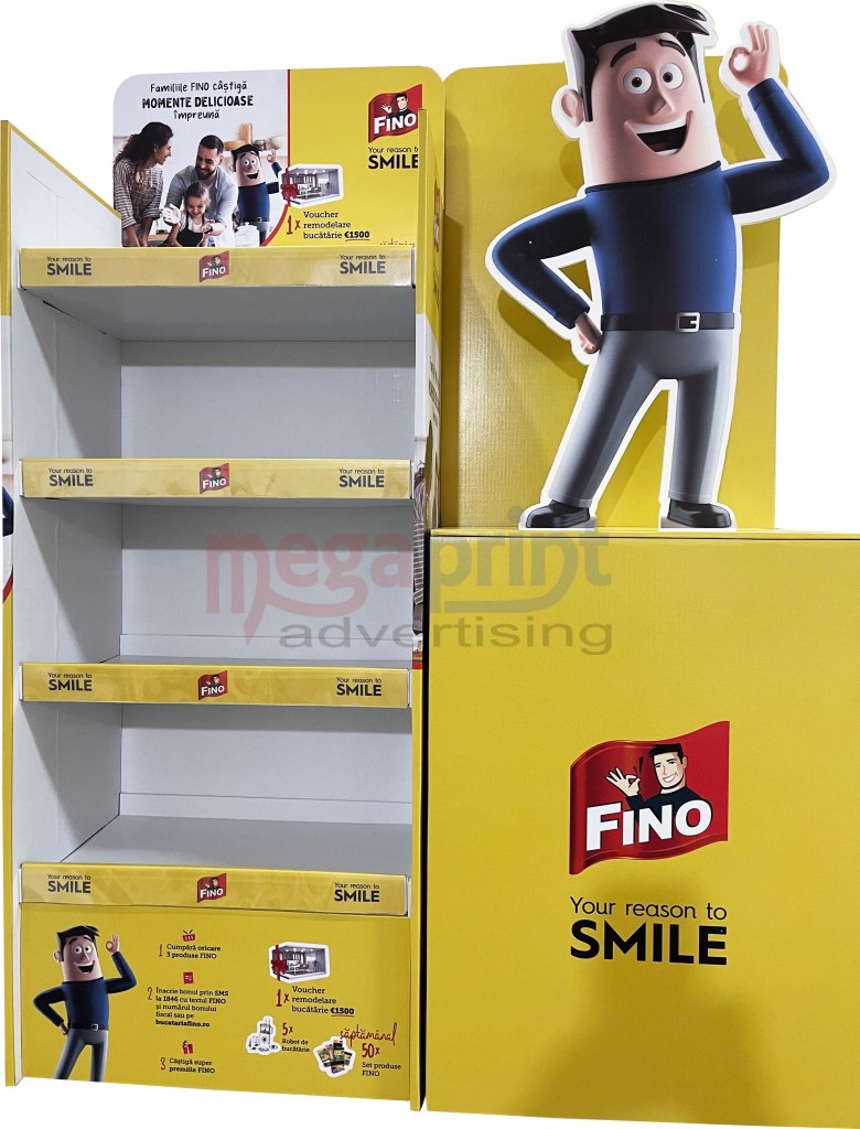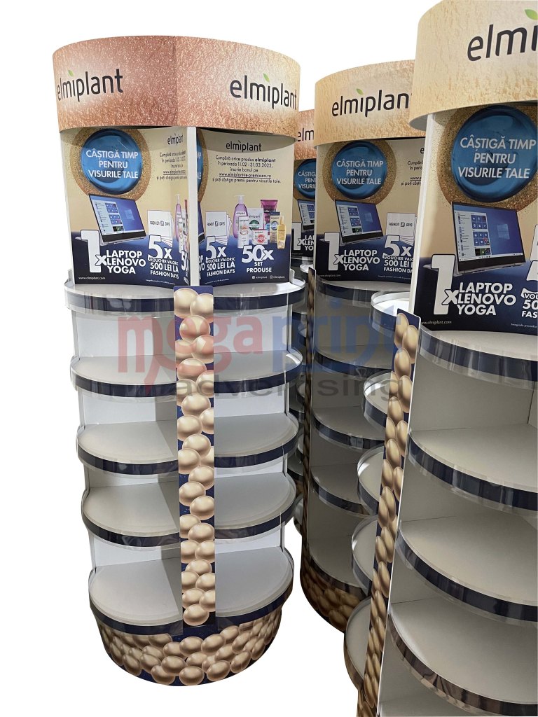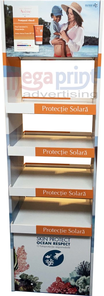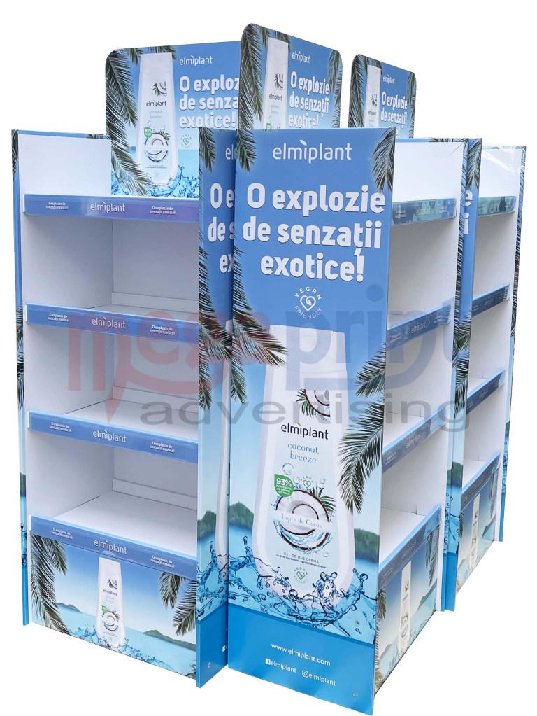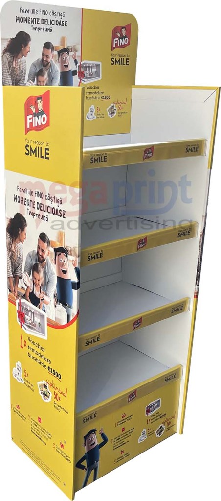 Stand din carton cu sistem de prindere chep palet si inserturi in interior,